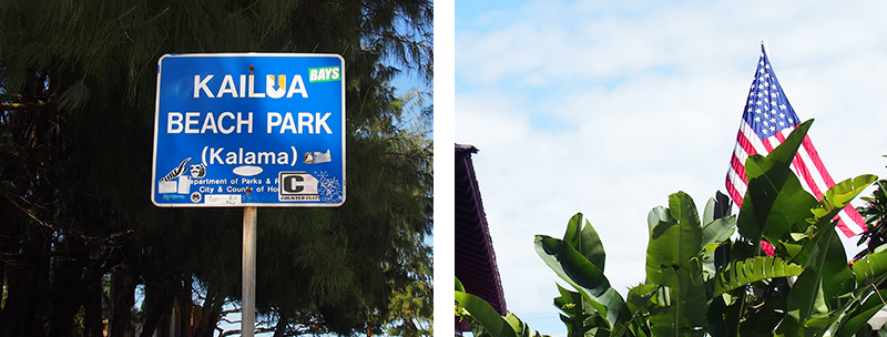 Kailua, c’est une petite ville de l’île Oahu à Hawaï. Elle est située sur la côte nord-est à 10 kilomètres d’Honolulu. Pour y aller, nous avons pris un bus en partant de Waïkiki puis fait 1 changement (pardon mais je ne me souviens plus des lignes). Il faut compter 45min / 1 heure pour s’y rendre avec un bon coup de froid à l’arrivée car même s’il fait toujours chaud à Hawaï, les conducteurs et locaux adooorent la clim… Pour le retour, le bus n’est tout simplement pas venu,.. on a du donc prendre un taxi pour 50/60 $.. Bref.