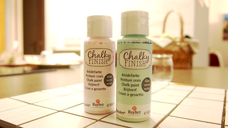 Les couleurs pastel sont indémodables et cette année elles inondent les boutiques déco ! J’ai fait le choix de partir pour ce DIY sur une peinture craie de la marque Chalky Finish : un joli mauve pâle, un vert menthe et un blanc.