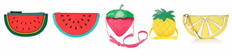 Les gourmandes, vous avez certainement vu passer les petites pochettes décalées et tutti frutti ces derniers temps ! Celle de Charlotte Olympia notamment (995€…). Il en existe aussi chez New Look ou Nasty Gal à des prix beaucoup plus accessibles.