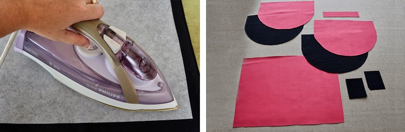 2) Avec le fer à repasser, poser le thermocollant sur le coton noir ; cela rendra la doublure plus rigide.