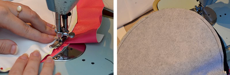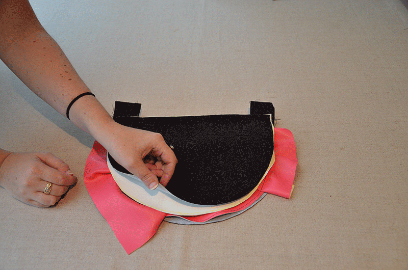 6) Maintenant on assemble les 2 arcs de cercle endroit contre endroit. On veille à bien couper l’excédent de tissu sur les côtés.