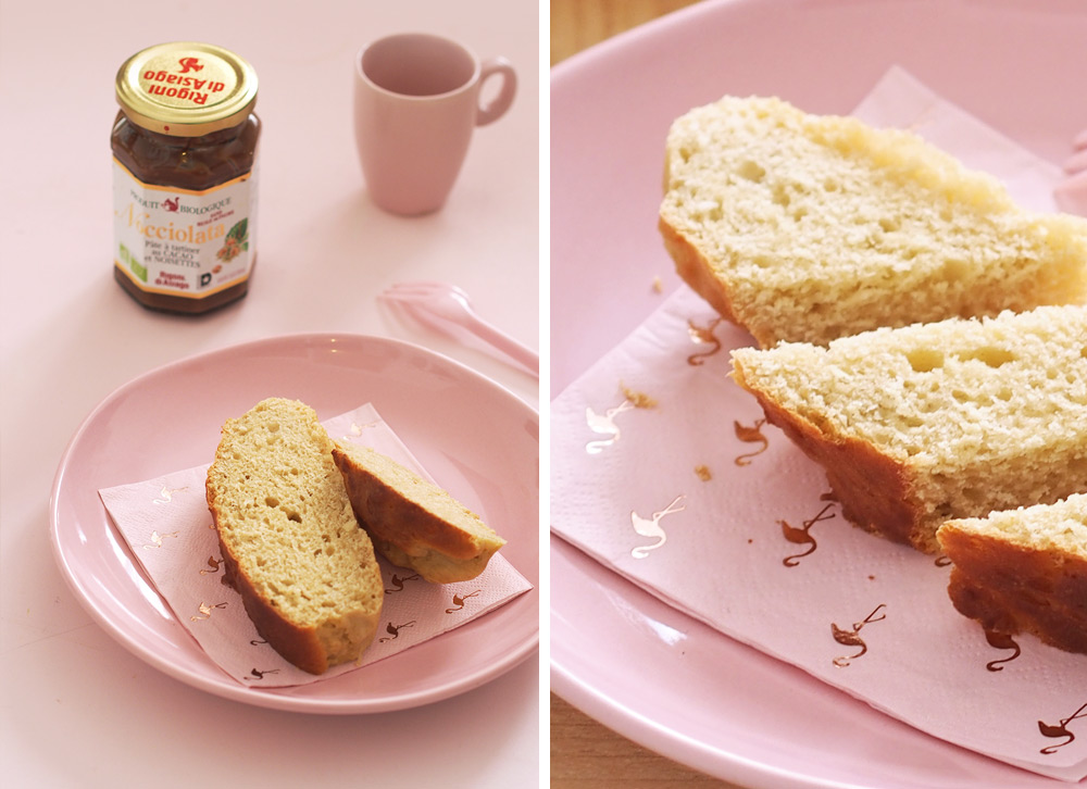 Testée et approuvée, la recette est gourmande mais pas trop calorique puisque j’ai bien réduit les proportions de beurre. De plus, j’ai utilisé du lait d’amande (et non de vache qui est banni de mon frigo) auquel j’ai ajouté une gousse de vanille rapportée de mon voyage en Martinique, le résultat est à tomber ! Résultat, elle n’aura duré qu’une journée… La prochaine fois, j’en congèlerai la moitié pour être sûre de ne pas être trop tentée et d’en garder pour plusieurs petits-déjeuners ou goûters !