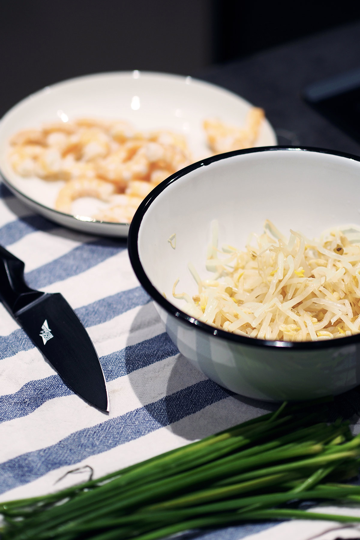 - Faire cuire les vermicelles de riz comme indiqué sur le paquet (4mn dans de l’eau chaude en principe) puis passer sous l’eau froide directement après cuisson pour les refroidir et enlever de l’amidon.