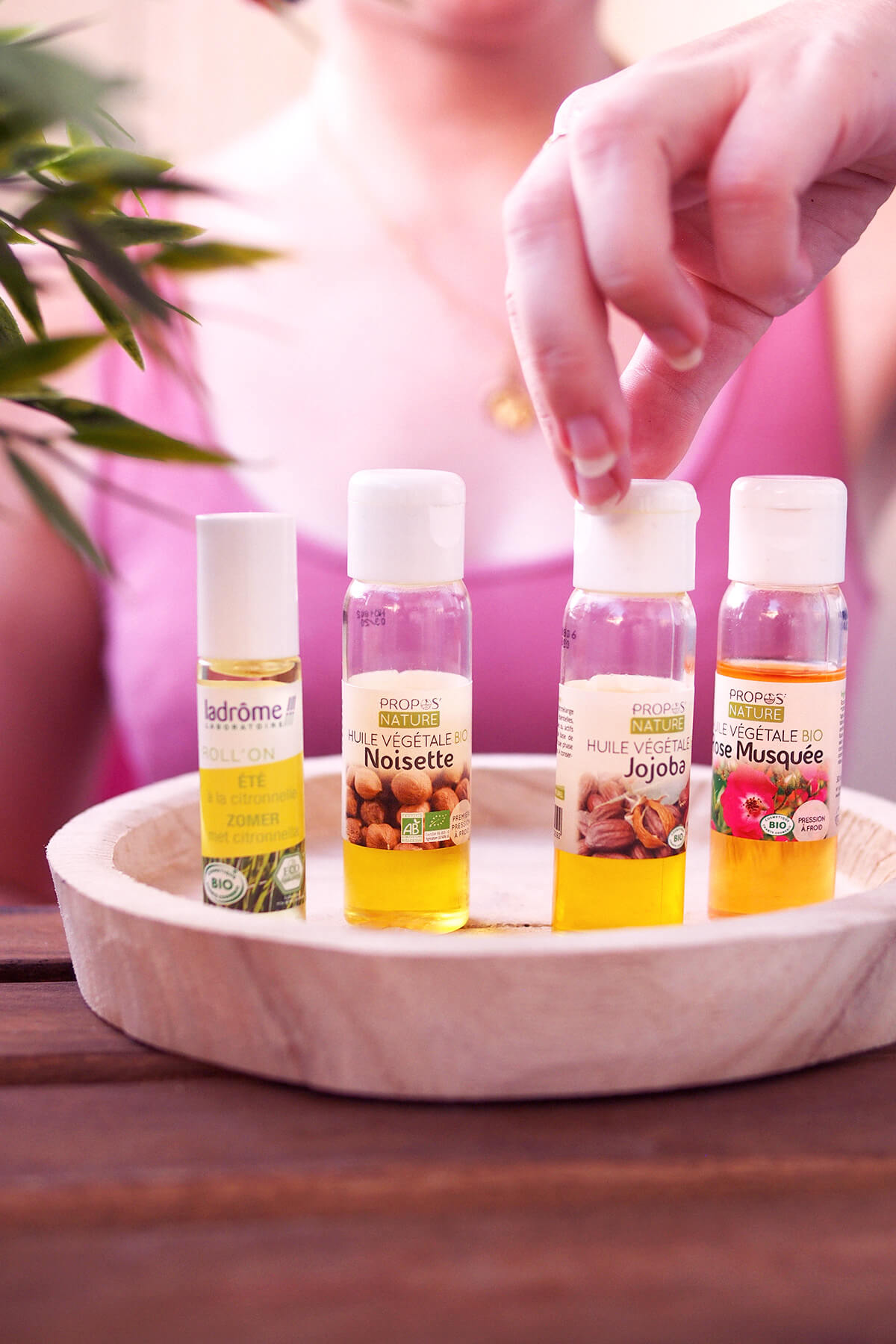 Me concernant, elles m’accompagnent depuis déjà quelques années bien qu’ en tout premier, j’avais surtout commencé à m’intéresser aux huiles essentielles (HE). J’ai cependant instauré depuis quelques mois une véritable routine en intégrant de nombreuses huiles végétales (HV). Clairement, avant, cela ne m’intéressait pas ou peu et je n’utilisais que des produits déjà prêt-à-l’emploi (démaquillant, huile spéciale corps, lait corps, huile spécial sport, huile minceur, etc). Et au fil des mois et après de multiples discussions avec ma kinésithérapeute notamment, j’ai commandé des huiles en tout genre et c’est devenu depuis une petite addiction, oui oui. Je n’achète plus rien d’autre !