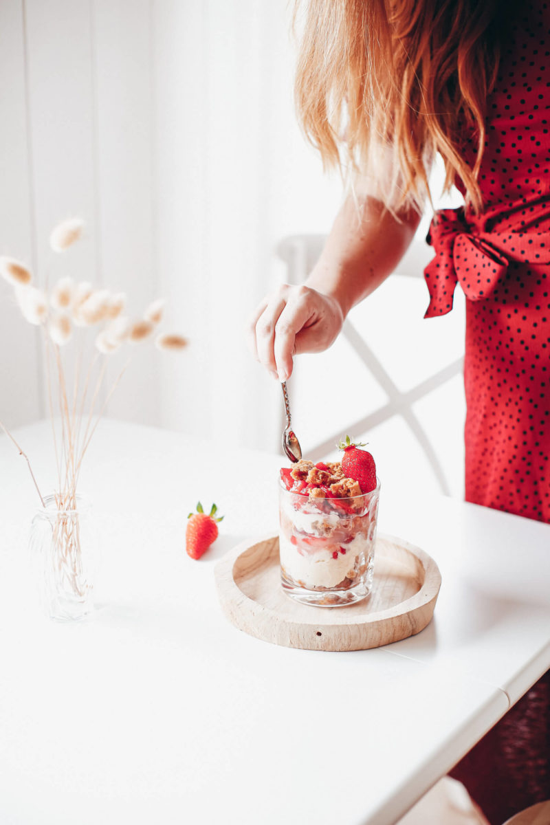 Tarte aux fraises servie en verrine avec recette de palets bretons maison. Recette gourmande par excellence !