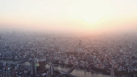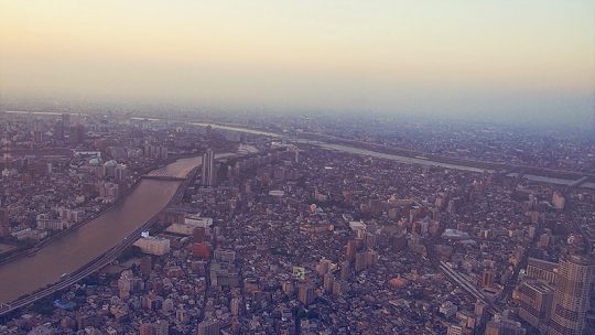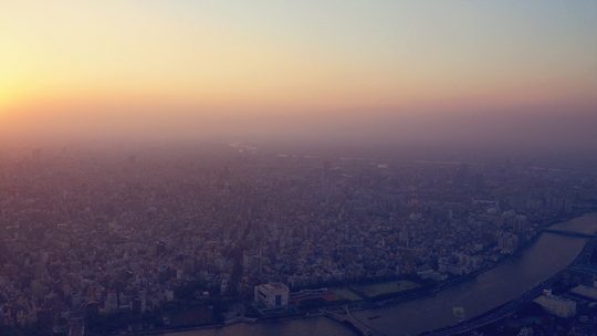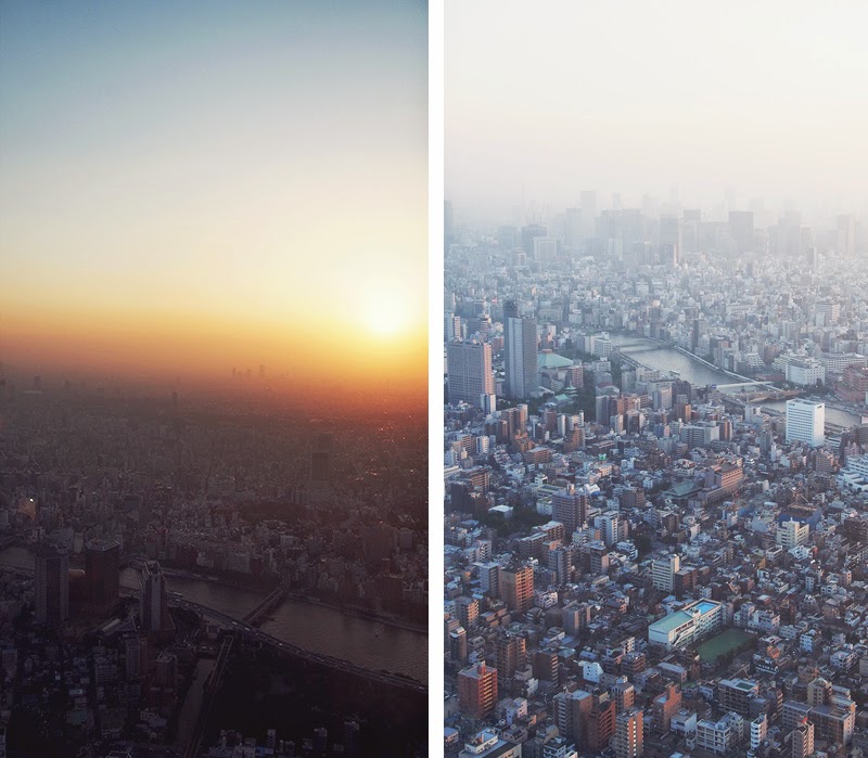 Une visite au coucher du soleil, une ville interminable qui se fond avec le ciel, la brume polluée, les 35°c qu’offrait cette journée, le japon… Apparemment lorsque le temps est bien dégagé, on peut apercevoir le Mont Fuji.