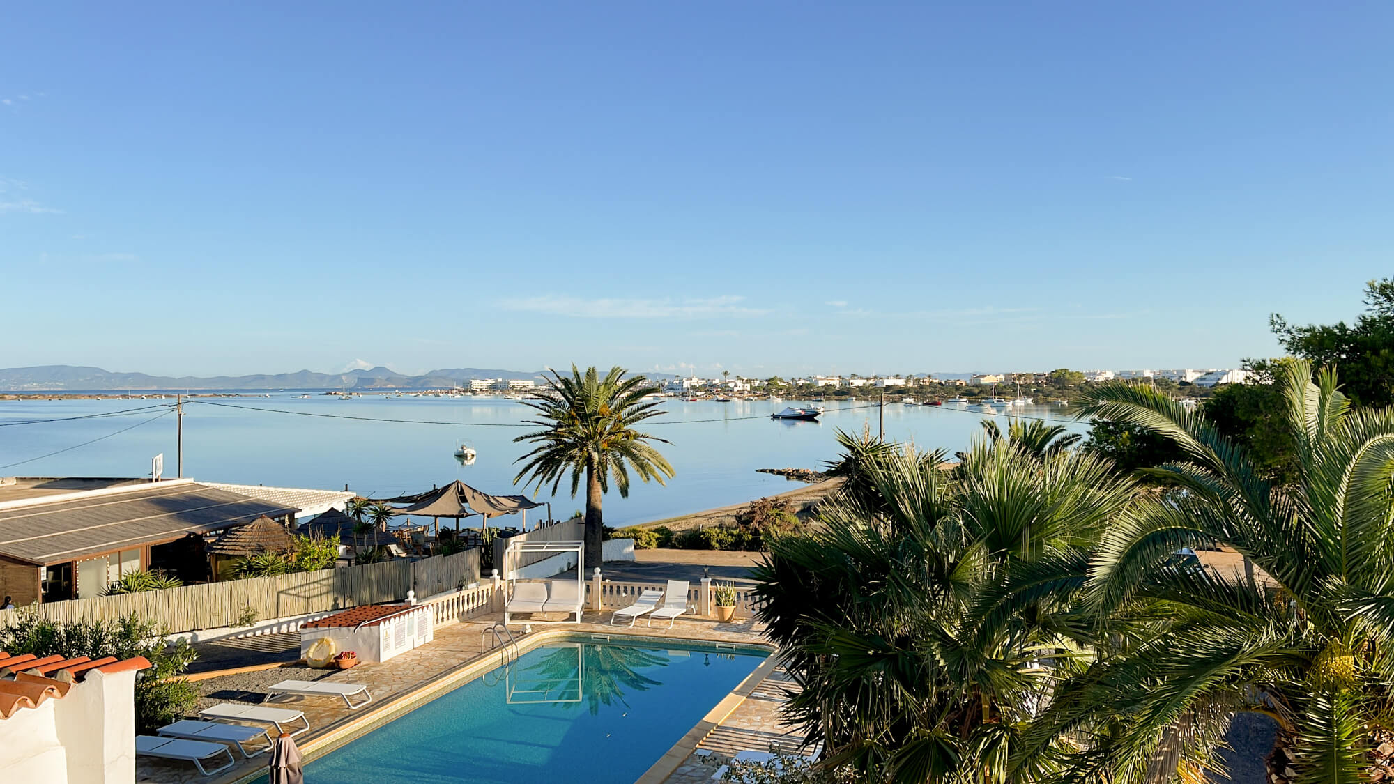 L’hôtel est implanté au bord d’un lac, Estany des Peix, offrant un panorama relaxant dès le réveil. Proche du port de La Savina, il permet d’arriver rapidement à pied ou en scooter après avoir débarqué du ferry. C’est aussi un excellent point de départ pour visiter les incontournables de l’île, notamment les plages comme Illetes ou Cala Saona.