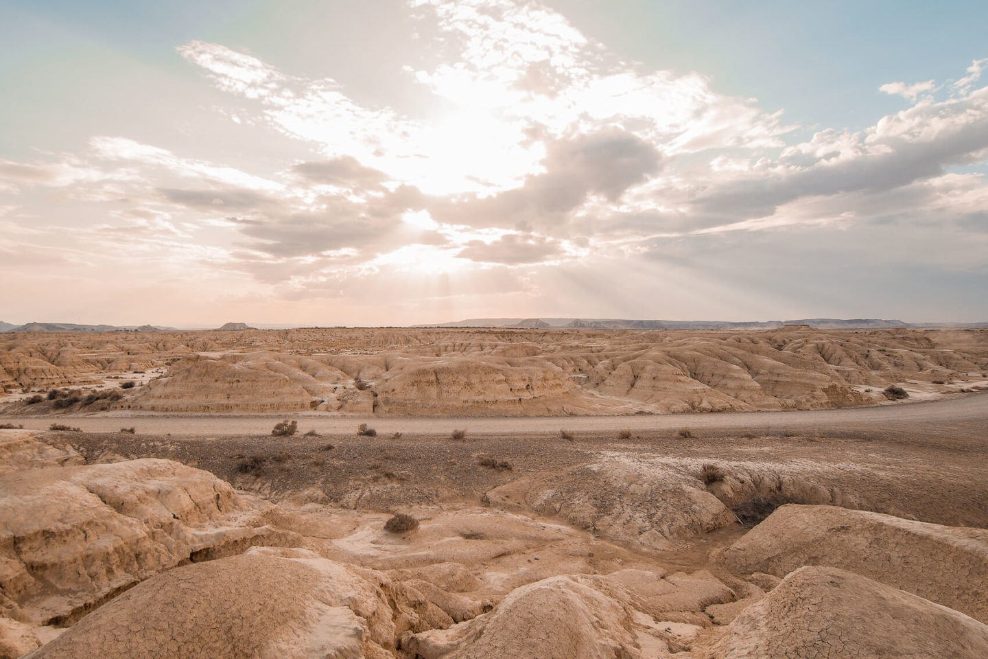 Un dépaysement total proche des Pyrénées espagnoles. Les paysages du désert des bardenas ressemblent étrangement à un paysage lunaire jonché de roches abruptes. On se croirait sur une autre planète avec ses reliefs insolites et exotiques. C’est un espace totalement naturel et vierge de 42.000 hectares : 42 ha de terre rougeâtre, de canyons, de formations rocheuses créées par le vent et l’érosion depuis des milliers d’années. Personne n’y habite mais en fait si… Vous retrouverez quelques bergers et leurs troupeaux, des militaires (il y a une caserne en plein milieu) et puis bien sûr une faune et flore spécifique (oiseaux, rapaces, renards, chevreuils…). Le parc est d’ailleurs protégé et reconnu depuis 2000 réserve de la biosphère par l’UNESCO.