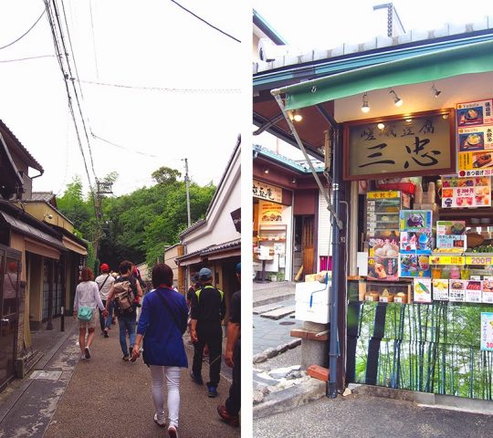 Pour s’y rendre, l’endroit est très facilement accessible en train/métro (gare Saga Arashiyama) mais préférez y aller en semaine car l’endroit est très touristique. Sur place, comme pour les temples, il y a une rue assez commerçante avec plein de restaurants et ensuite on accède à cette forêt par des petites routes. Puis vous marchez, marchez, et la taille des bambous est vraiment de plus en plus impressionnante, avec des effets de lumière particulière ! Sur place, si vous souhaitez, vous pouvez vous faire promener en pousse pousse par un japonais en costume traditionnel.