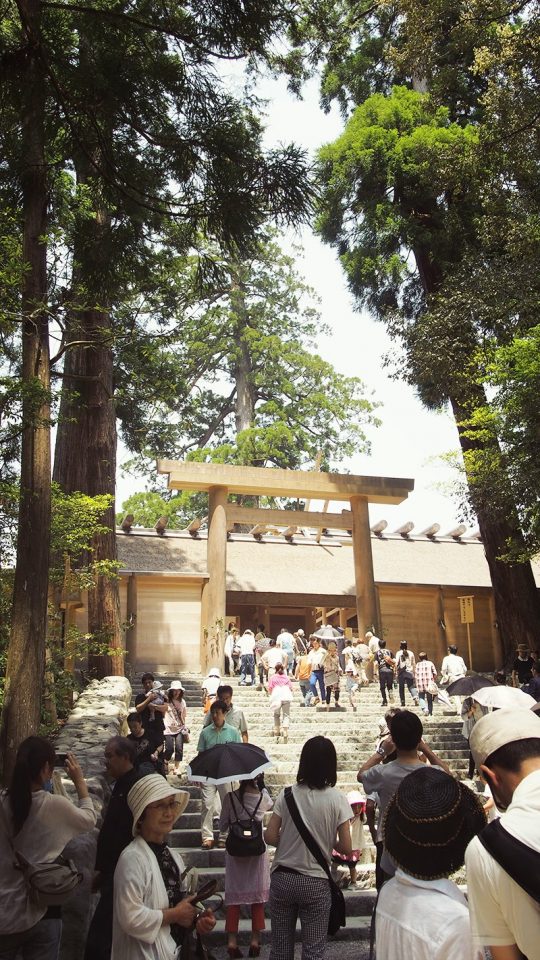 Mon amie japonaise m’a dit que tout japonais devait s’y rendre au moins une fois dans leur vie. Ce jour là, je devais soit aller au Mont Fuji, soit à Ise et c’est ce dernier lieu que j’ai choisi. Sous une chaleur torride, on a donc fait la route depuis Nagoya en voiture pour arriver dans la ville.
