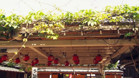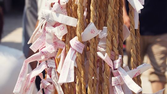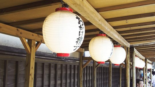 Comme pour tous les temples, on doit marcher le long de boutiques, restaurants, habitations ; c’est le moment de goûter des choses gluantes et étranges (mais plutôt bonnes)… Puis en arrivant au temple, petit « salut » sous le « torii« , portail traditionnel, puis traversée du pont Uji-bashi pour entrer dans l’un des plus hauts lieux de culte et de spiritualité.