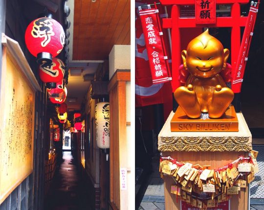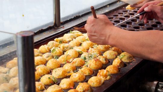 Goûter aux takoyaki, la spécialité d’Osaka, des petites boulettes de pâtes qui contiennent du poulpe et cuisent dans des moules. C’est extrêmement populaire et je n’ai pas manqué d’en remanger en rentrant en France ; on en trouve des très bons rue St Anne à Paris et même à Marseille.