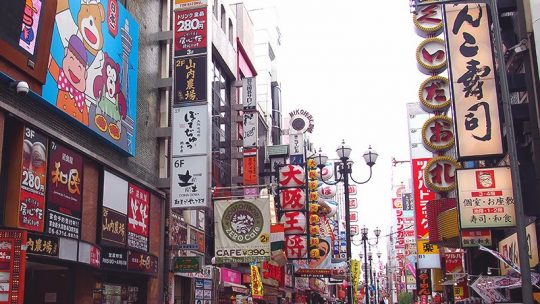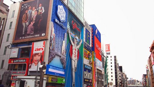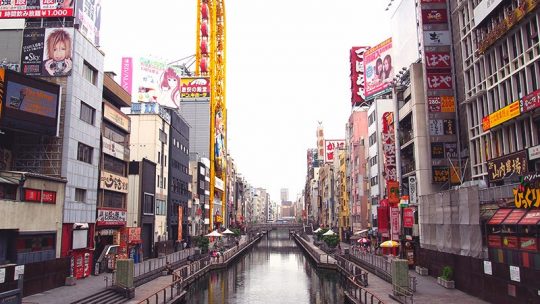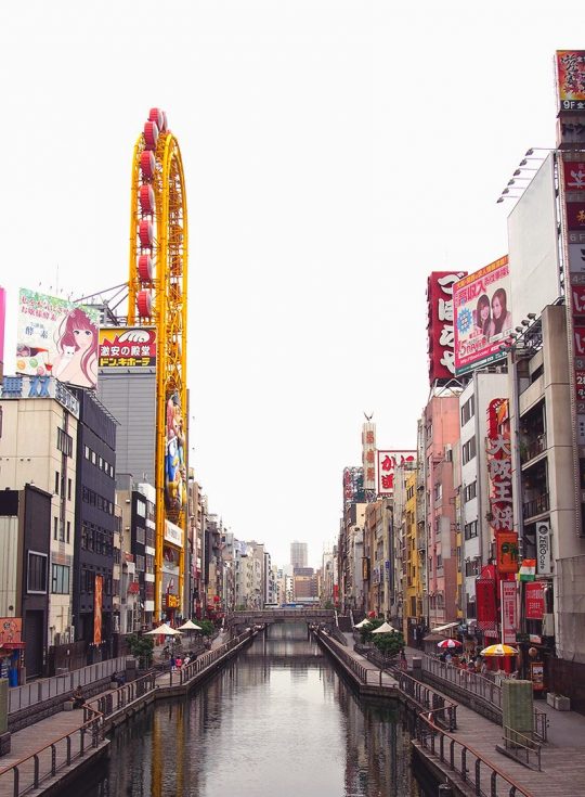 Balade à Dōtonbori, une des célèbres rues bien connue pour ses nombreuses boutiques, ses restaurants et ses enseignes lumineuses. La rue figure toujours dans les guides pour les touristes étrangers et japonais. On peut goûter aussi à d’autres spécialités dans cet endroit comme les okonomiyaki, à mi chemin entre une crêpe au chou et omelette, typiquement japonais.