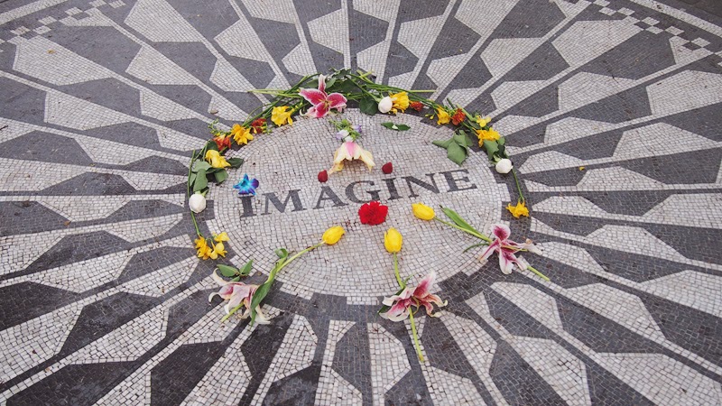 - Strawberry Fields : place en l’honneur à John Lennon, assassiné jute en face, endroit où il habitait. Le mémorial a la forme d’un triangle dont le cœur est constitué d’un symbole de paix en mosaïque, avec écrit « Imagine », une de ses plus belles chansons. (72e rue, juste en face du Dakota Building)